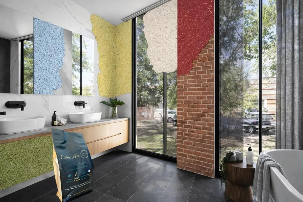 Panneaux décoratifs innovants DIY, solutions acoustiques, étanches et enduits décoratifs biosourcés pour un style unique et durable.